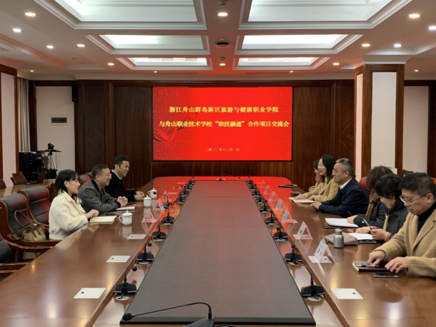 为深入贯彻落实国家关于培养技能人才文件精神,探索舟山技术技能人才培育新模式,学校于2022年12月1日召开了与舟山职业技术学校“职技融通”合作项目交流会。舟山职业技术学校副校长王冠华,招生就业处处长唐柯跃、副处长孙超颖;我校校长郑能波、校长顾问周菊芝、教务处处长邬玮玮与二级学院负责人共同出席了此次会议。